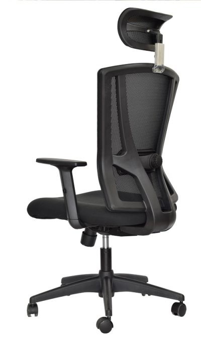 Espaldar alto, Marco perimetral en polipropileno, en malla poliester tensada y soporte lumbar tapizado, regulable en altura y profundidad.