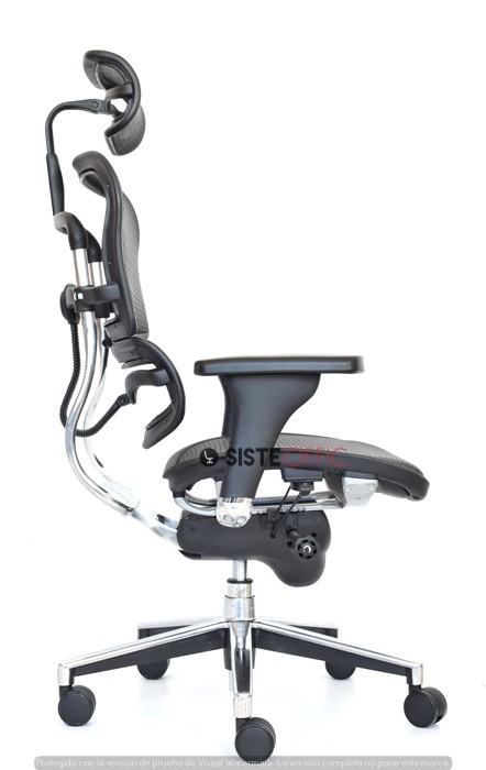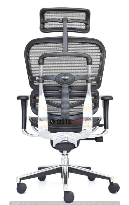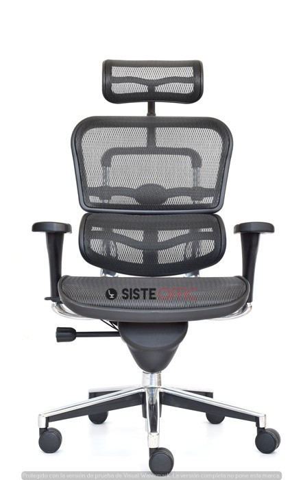 Espaldar regulable en altura (8cm), marco perimetral inyectado en nylon, malla en nylon tensada y estructura en aluminio.